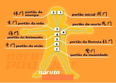 Consiste basicamente em um sistema circulatório de chakra, composto por 8 portões que controlam o fluxo do chakra, para que este não ultrapasse o limite que o corpo de um shinobi aguenta. É possível abrir estes portões, mas isso tem conseqüências sérias para o corpo do shinobi. O chamado “Lótus” desactiva o controlo dos portões dando uma força inigualável ao usuário. Ao conseguir abrir os 8 portões, a pessoa adquire temporariamente poderes superiores à de um Kage, mas após esse tempo, a pessoa morre.